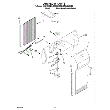 This fan scroll is the plastic housing that surrounds the evaporator fan in the freezer section. It directs air across the evaporator coils and into the ducts, helping your refrigerator move cold air evenly and maintain stable temperatures.