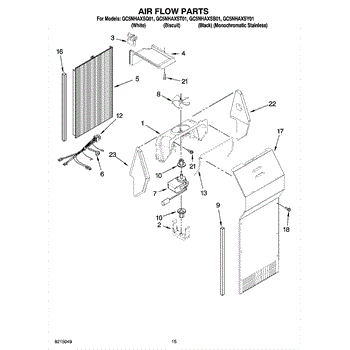 This fan scroll is the plastic housing that surrounds the evaporator fan in the freezer section. It directs air across the evaporator coils and into the ducts, helping your refrigerator move cold air evenly and maintain stable temperatures.