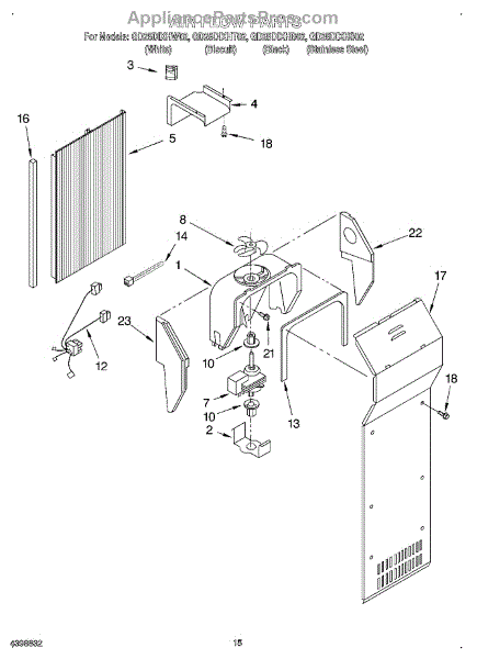 The Evaporator Fan Motor is an OEM replacement part for Whirlpool refrigerators. Located inside the refrigerator compartment, it powers the evaporator fan, which circulates air across the cooling coils. This is the motor only. For the blade order part number WP2169142.