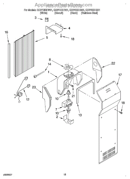 This fan scroll is the plastic housing that surrounds the evaporator fan in the freezer section. It directs air across the evaporator coils and into the ducts, helping your refrigerator move cold air evenly and maintain stable temperatures.