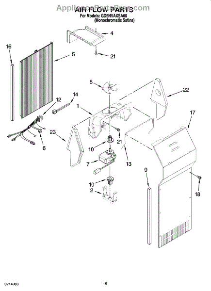 This fan scroll is the plastic housing that surrounds the evaporator fan in the freezer section. It directs air across the evaporator coils and into the ducts, helping your refrigerator move cold air evenly and maintain stable temperatures.
