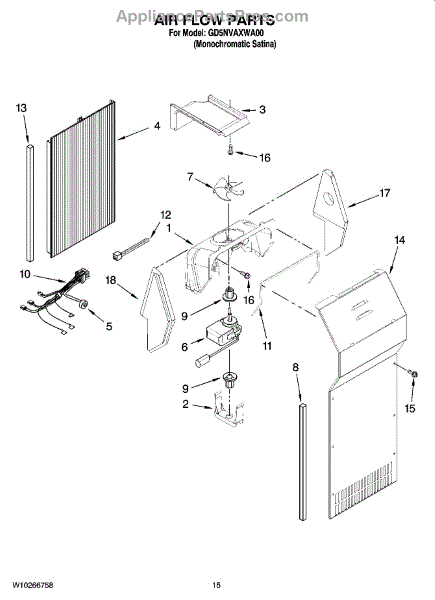 The Evaporator Fan Motor Blade is an OEM part for Whirlpool refrigerators. It is a crucial component of the refrigerator's cooling system, attached to the evaporator fan motor to circulate air over the evaporator coils. This circulation helps distribute cold air throughout the refrigerator and freezer compartments, ensuring consistent temperatures and efficient operation.