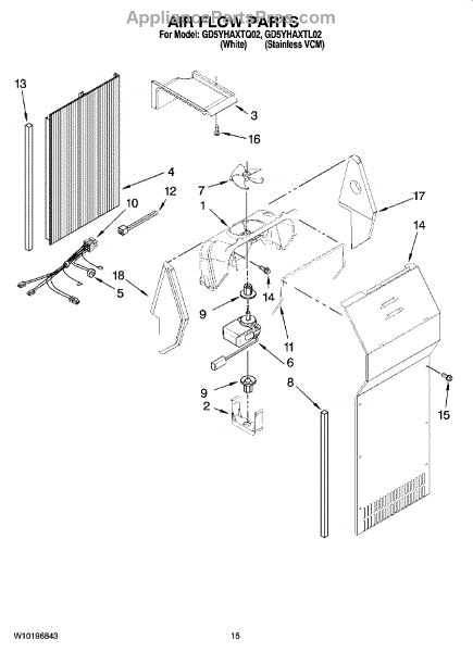 This fan scroll is the plastic housing that surrounds the evaporator fan in the freezer section. It directs air across the evaporator coils and into the ducts, helping your refrigerator move cold air evenly and maintain stable temperatures.
