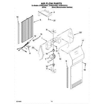 This fan scroll is the plastic housing that surrounds the evaporator fan in the freezer section. It directs air across the evaporator coils and into the ducts, helping your refrigerator move cold air evenly and maintain stable temperatures.