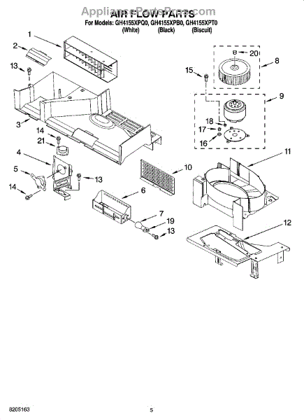 Parts for Whirlpool GH4155XPT0: 04 - Air Flow Parts