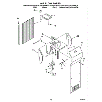 This fan scroll is the molded blower housing that directs airflow from the appliance fan for efficient cooling and ventilation. Replacing a damaged scroll restores proper air path and reduces airflow noise or performance issues. What it does
