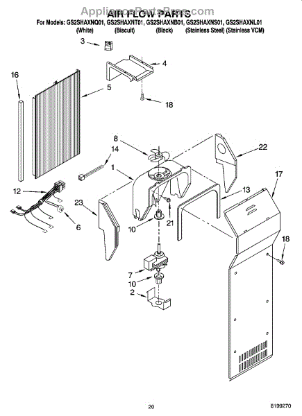 This fan scroll is the molded blower housing that directs airflow from the appliance fan for efficient cooling and ventilation. Replacing a damaged scroll restores proper air path and reduces airflow noise or performance issues. What it does