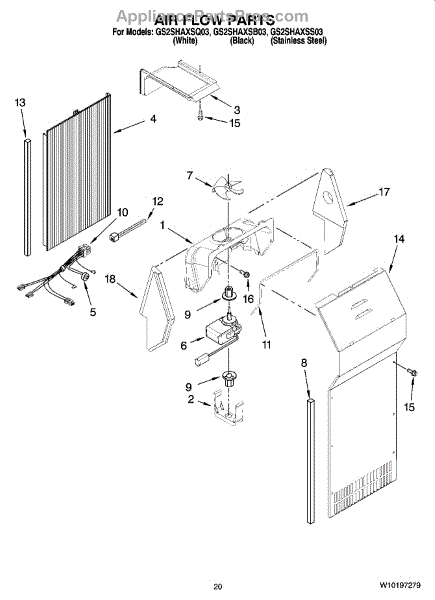 This fan scroll is the molded blower housing that directs airflow from the appliance fan for efficient cooling and ventilation. Replacing a damaged scroll restores proper air path and reduces airflow noise or performance issues. What it does
