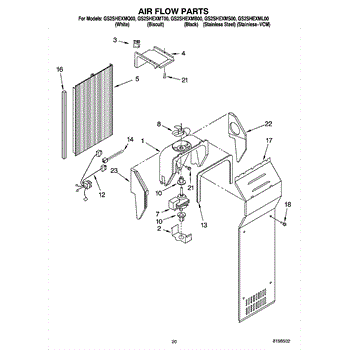 This fan scroll is the molded blower housing that directs airflow from the appliance fan for efficient cooling and ventilation. Replacing a damaged scroll restores proper air path and reduces airflow noise or performance issues. What it does
