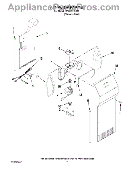 The Evaporator Fan Motor is an OEM replacement part for Whirlpool refrigerators. Located inside the refrigerator compartment, it powers the evaporator fan, which circulates air across the cooling coils. This is the motor only. For the blade order part number WP2169142.