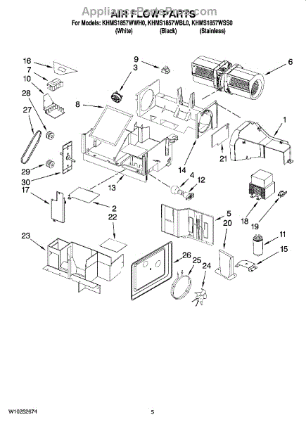 Parts for Kitchenaid KHMS1857WWH0: 04 - Air Flow Parts