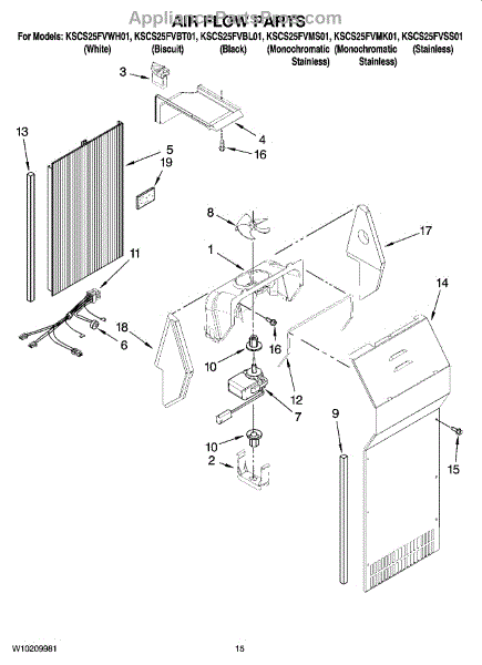 This fan scroll is the plastic housing that surrounds the evaporator fan in the freezer section. It directs air across the evaporator coils and into the ducts, helping your refrigerator move cold air evenly and maintain stable temperatures.