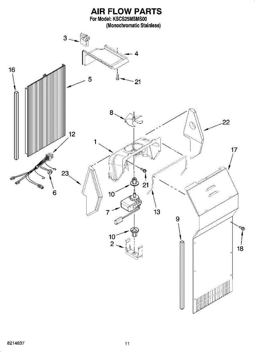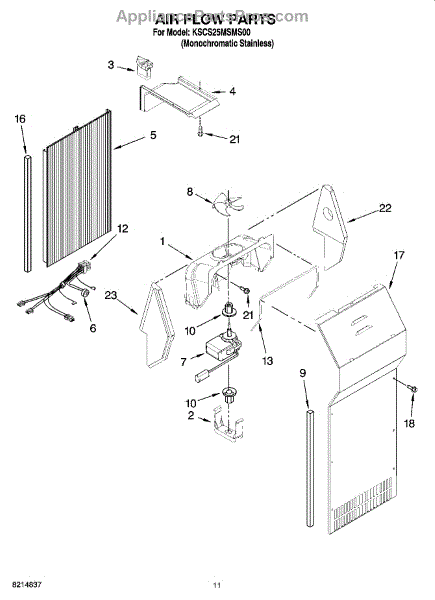 This fan scroll is the plastic housing that surrounds the evaporator fan in the freezer section. It directs air across the evaporator coils and into the ducts, helping your refrigerator move cold air evenly and maintain stable temperatures.