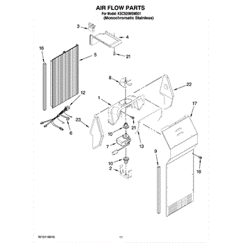 This fan scroll is the plastic housing that surrounds the evaporator fan in the freezer section. It directs air across the evaporator coils and into the ducts, helping your refrigerator move cold air evenly and maintain stable temperatures.