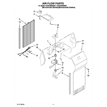 This fan scroll is the plastic housing that surrounds the evaporator fan in the freezer section. It directs air across the evaporator coils and into the ducts, helping your refrigerator move cold air evenly and maintain stable temperatures.