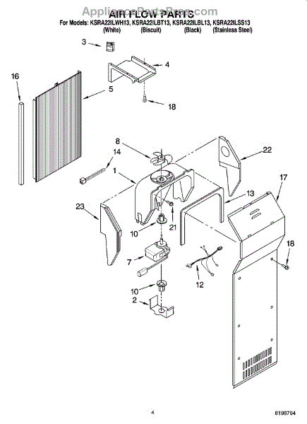 This fan scroll is the molded blower housing that directs airflow from the appliance fan for efficient cooling and ventilation. Replacing a damaged scroll restores proper air path and reduces airflow noise or performance issues. What it does