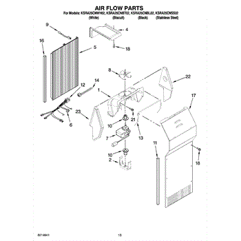 This fan scroll is the plastic housing that surrounds the evaporator fan in the freezer section. It directs air across the evaporator coils and into the ducts, helping your refrigerator move cold air evenly and maintain stable temperatures.