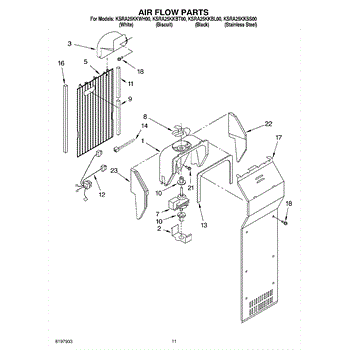 This fan scroll is the plastic housing that surrounds the evaporator fan in the freezer section. It directs air across the evaporator coils and into the ducts, helping your refrigerator move cold air evenly and maintain stable temperatures.