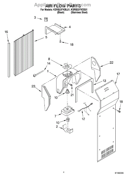 This fan scroll is the molded blower housing that directs airflow from the appliance fan for efficient cooling and ventilation. Replacing a damaged scroll restores proper air path and reduces airflow noise or performance issues. What it does