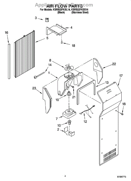 This fan scroll is the molded blower housing that directs airflow from the appliance fan for efficient cooling and ventilation. Replacing a damaged scroll restores proper air path and reduces airflow noise or performance issues. What it does