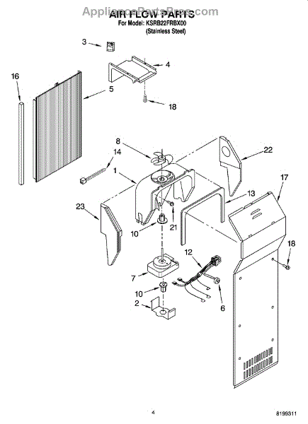 This fan scroll is the molded blower housing that directs airflow from the appliance fan for efficient cooling and ventilation. Replacing a damaged scroll restores proper air path and reduces airflow noise or performance issues. What it does