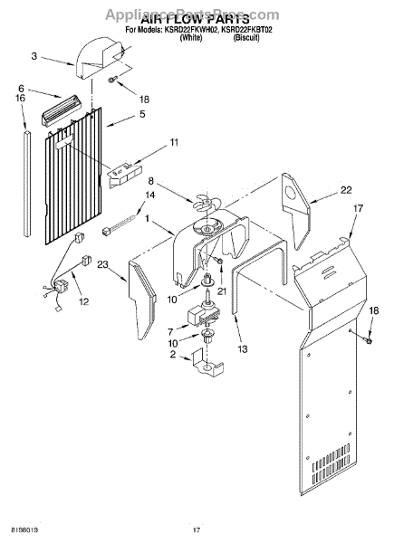 Parts for Kitchenaid KSRD22FKBT02: 10 - Air Flow Parts