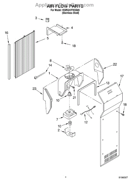 This fan scroll is the molded blower housing that directs airflow from the appliance fan for efficient cooling and ventilation. Replacing a damaged scroll restores proper air path and reduces airflow noise or performance issues. What it does