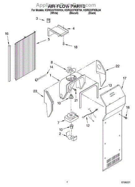 This fan scroll is the molded blower housing that directs airflow from the appliance fan for efficient cooling and ventilation. Replacing a damaged scroll restores proper air path and reduces airflow noise or performance issues. What it does