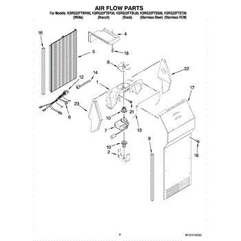 This fan scroll is the molded blower housing that directs airflow from the appliance fan for efficient cooling and ventilation. Replacing a damaged scroll restores proper air path and reduces airflow noise or performance issues. What it does