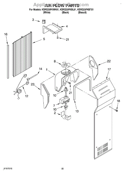 This fan scroll is the plastic housing that surrounds the evaporator fan in the freezer section. It directs air across the evaporator coils and into the ducts, helping your refrigerator move cold air evenly and maintain stable temperatures.
