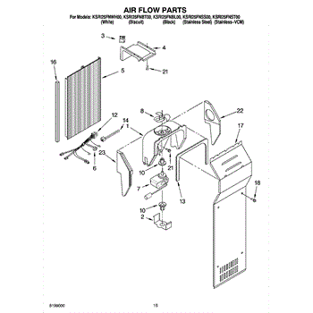 This fan scroll is the plastic housing that surrounds the evaporator fan in the freezer section. It directs air across the evaporator coils and into the ducts, helping your refrigerator move cold air evenly and maintain stable temperatures.