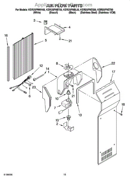 This fan scroll is the plastic housing that surrounds the evaporator fan in the freezer section. It directs air across the evaporator coils and into the ducts, helping your refrigerator move cold air evenly and maintain stable temperatures.