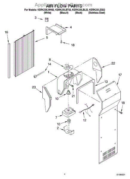 This fan scroll is the molded blower housing that directs airflow from the appliance fan for efficient cooling and ventilation. Replacing a damaged scroll restores proper air path and reduces airflow noise or performance issues. What it does