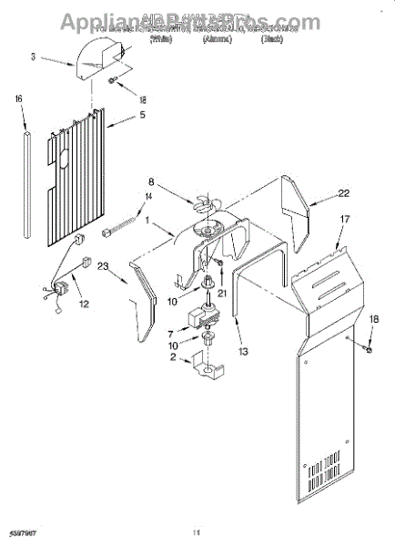 This fan scroll is the plastic housing that surrounds the evaporator fan in the freezer section. It directs air across the evaporator coils and into the ducts, helping your refrigerator move cold air evenly and maintain stable temperatures.