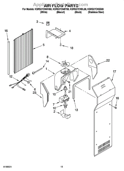 This fan scroll is the plastic housing that surrounds the evaporator fan in the freezer section. It directs air across the evaporator coils and into the ducts, helping your refrigerator move cold air evenly and maintain stable temperatures.