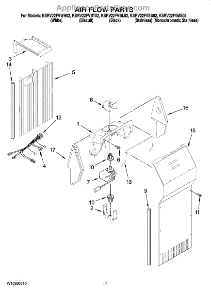 Parts for Kitchenaid KSRV22FVBT02: 10 - Air Flow Parts