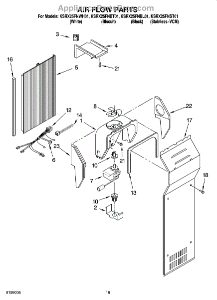 This fan scroll is the plastic housing that surrounds the evaporator fan in the freezer section. It directs air across the evaporator coils and into the ducts, helping your refrigerator move cold air evenly and maintain stable temperatures.
