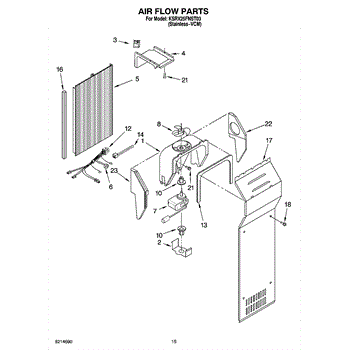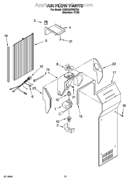 This fan scroll is the plastic housing that surrounds the evaporator fan in the freezer section. It directs air across the evaporator coils and into the ducts, helping your refrigerator move cold air evenly and maintain stable temperatures.