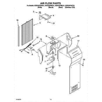 This fan scroll is the plastic housing that surrounds the evaporator fan in the freezer section. It directs air across the evaporator coils and into the ducts, helping your refrigerator move cold air evenly and maintain stable temperatures.