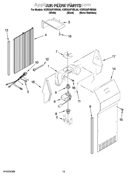 This fan scroll is the plastic housing that surrounds the evaporator fan in the freezer section. It directs air across the evaporator coils and into the ducts, helping your refrigerator move cold air evenly and maintain stable temperatures.