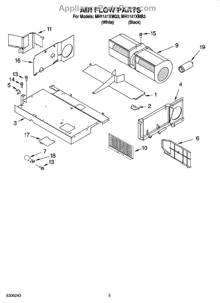 Parts for Whirlpool MH1141XMB3: 04 - Air Flow Parts