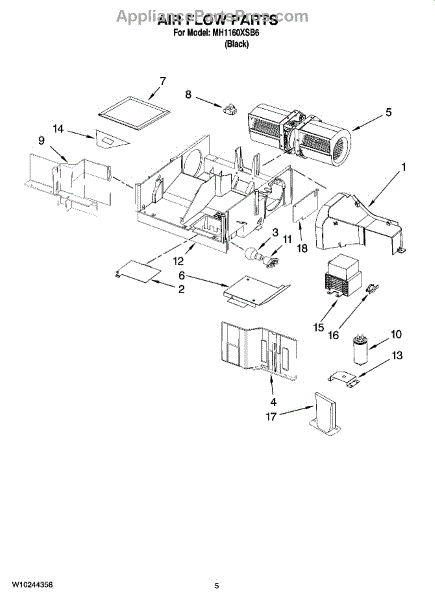 Parts for Whirlpool MH1160XSB6: 04 - Air Flow Parts