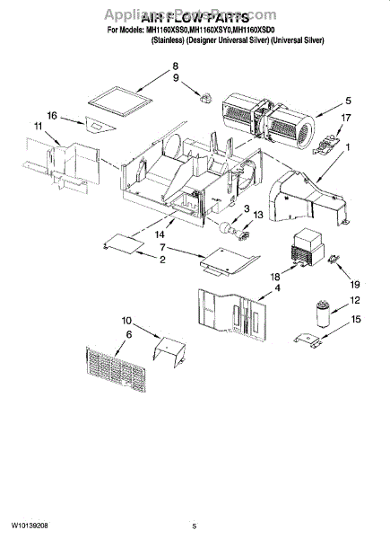 Parts for Whirlpool MH1160XSY0: 04 - Air Flow Parts
