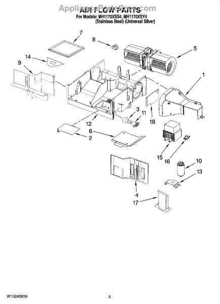 Parts for Whirlpool MH1170XSS4: 04 - Air Flow Parts