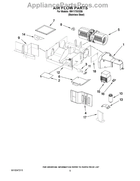 Parts for Whirlpool MH1170XSS6: 04 - Air Flow Parts