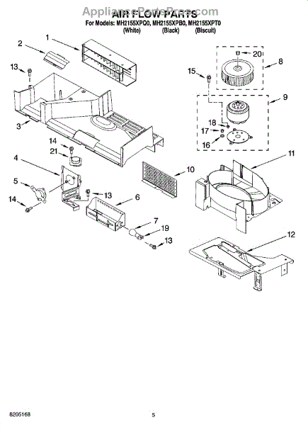 Parts for Whirlpool MH2155XPQ0: 04 - Air Flow Parts