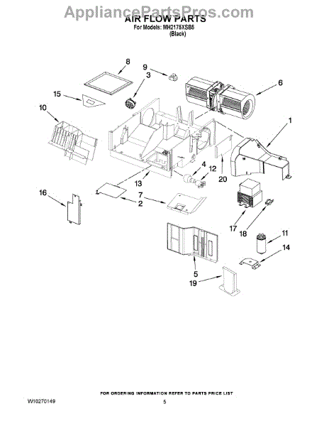 Parts for Whirlpool MH2175XSB5: 04 - Air Flow Parts
