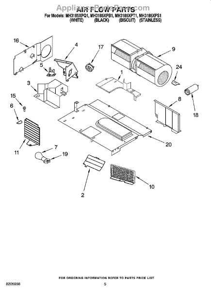 Parts for Whirlpool MH3185XPS1: 04 - Air Flow Parts