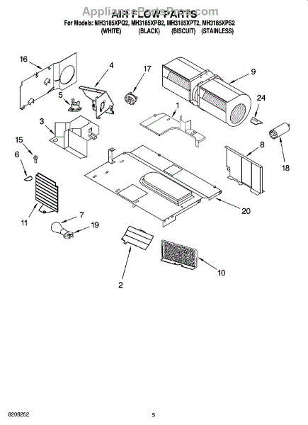 Parts for Whirlpool MH3185XPS2: 04 - Air Flow Parts