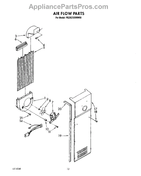 Parts for Whirlpool RS20CKXWL00: 08 - Air Flow Parts